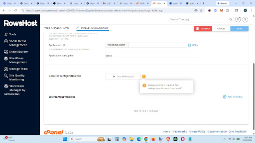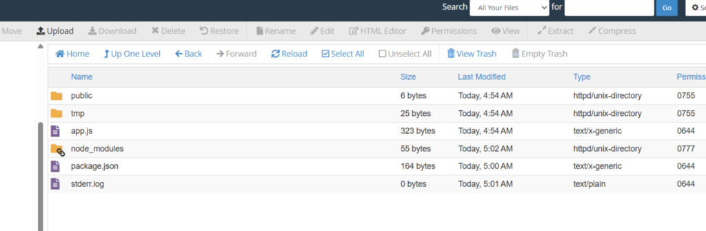 The Fix: Look at the very bottom of the screen. If you see a new folder in your File Manager called node_modules, it worked! cPanel often shows a red error because it tried to “test” the site before the tools were fully finished downloading. Ignore the red, look for the folder.